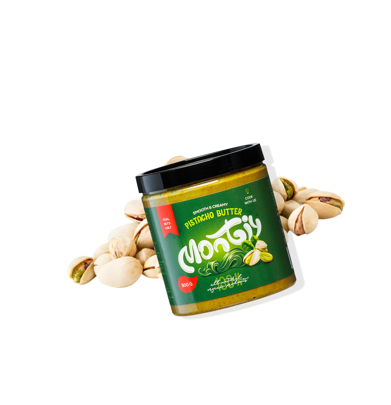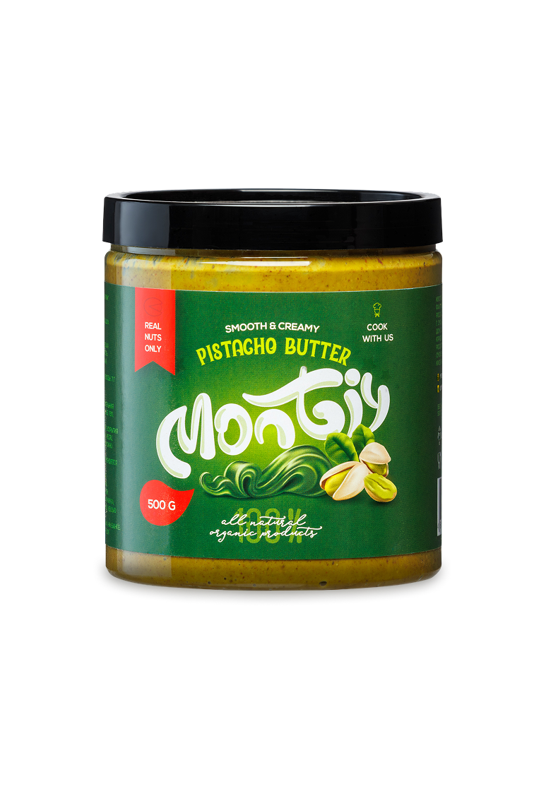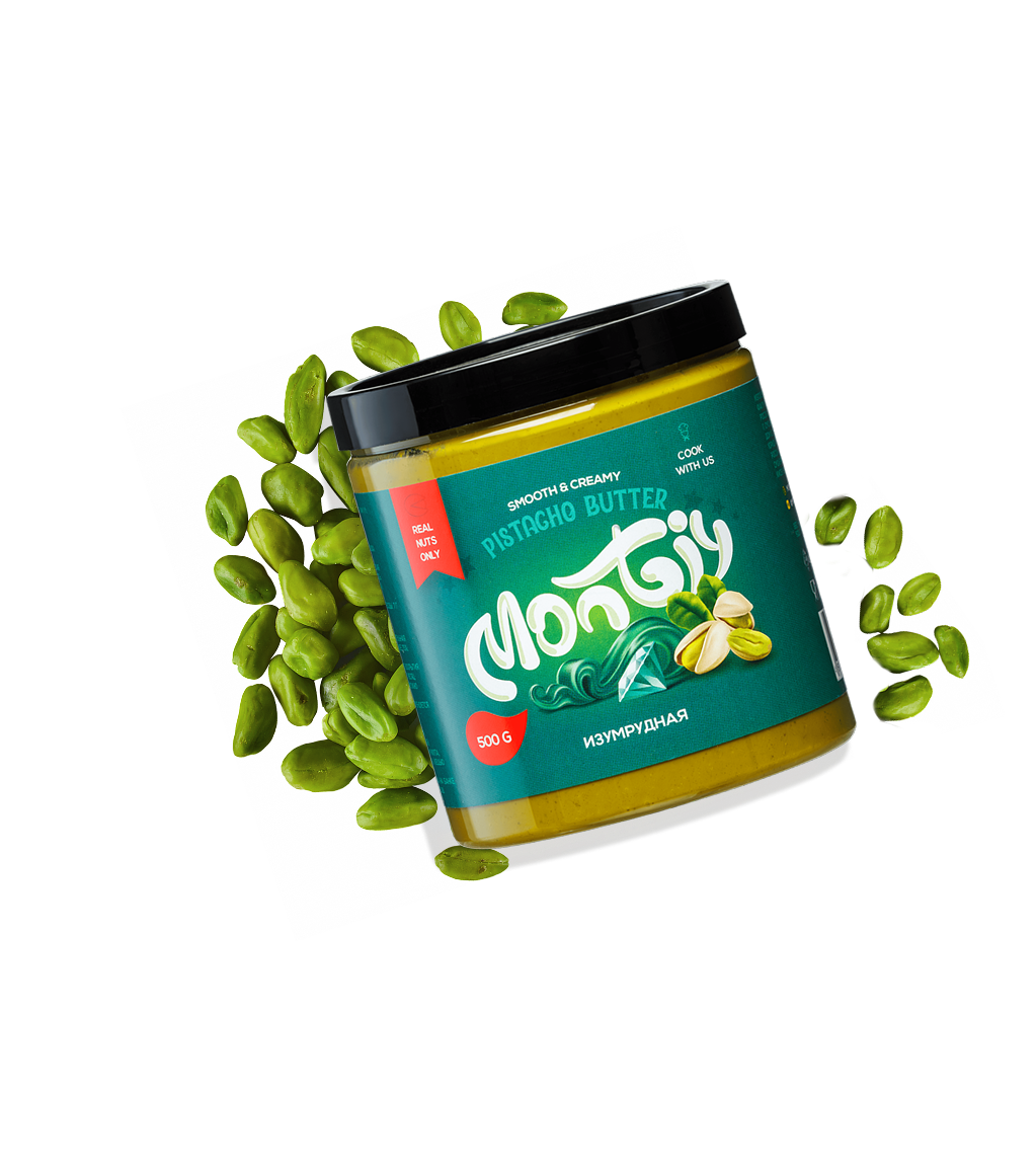 На производство фисташка поступает в сыром виде, подвергается ручной переборке, обжаривается, проходит через пресс, смешивается с ингридиентами, длительно перетерается в меланжере и полученный состав разливается в тару.